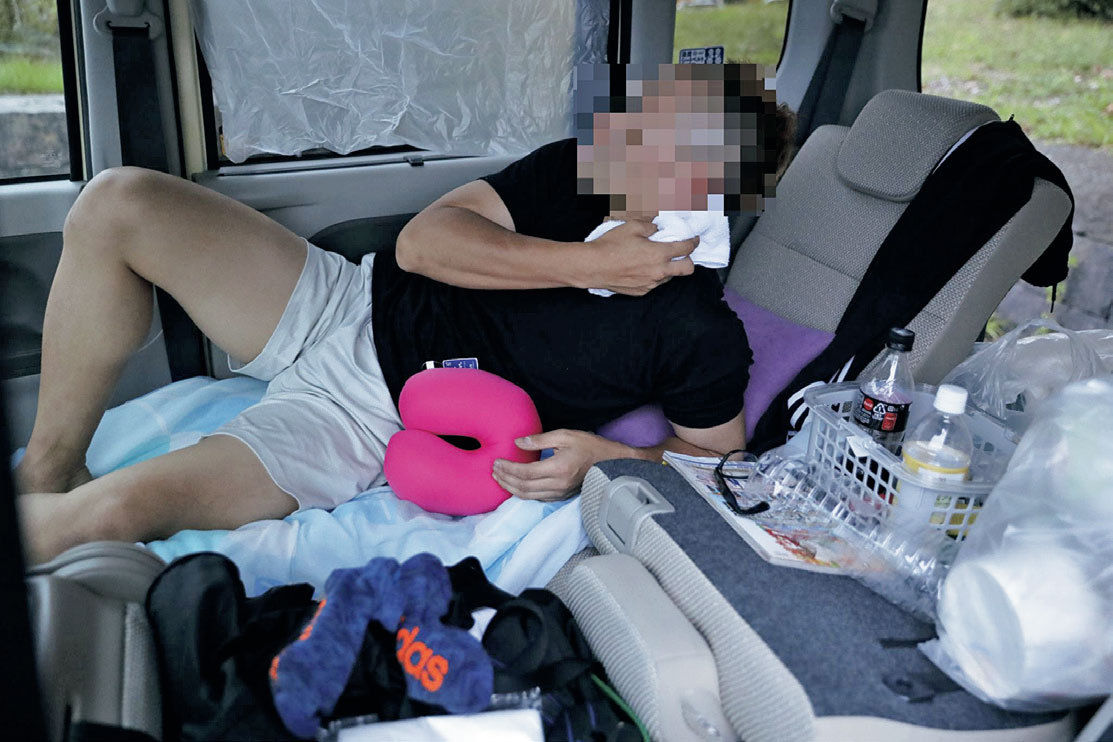 「車中泊は一時しのぎだ」と飄々と語るが、ストレスの多い車上暮らしも1年がたち、辛さが身にしみる。