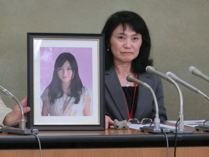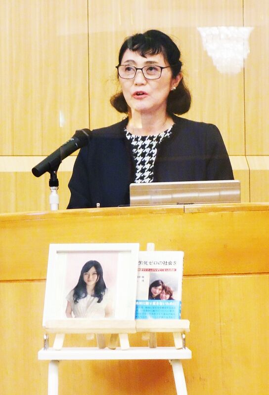 長時間労働やパワーハラスメントに苦しみ、2015年に自*た広告大手電通の新入社員高橋まつりさん=当時(24)=の母幸美さん(58)が講演。